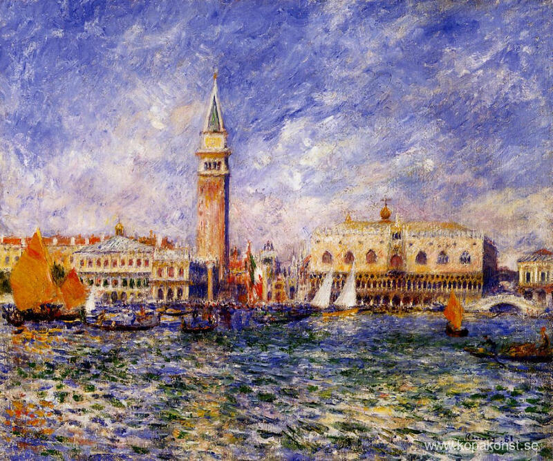 Vi erbjuder dig en hantverksmässig reproduktion på duk av det berömda konstverket 'Dogepalatset' av Pierre-Auguste Renoir, från Reproduktionsmuseet.