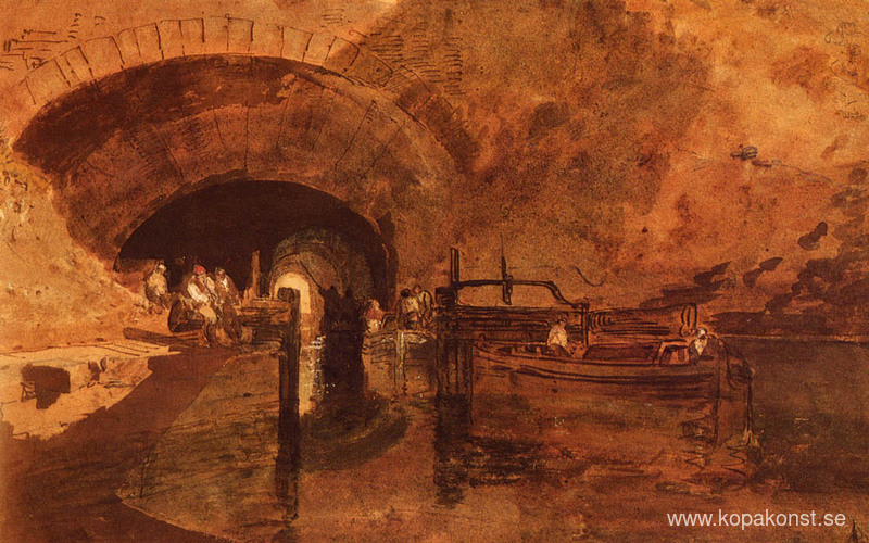 Vi erbjuder dig en hantverksmässig reproduktion på duk av det berömda konstverket 'En kanaltunnel nära Leeds' av William Turner, från Reproduktionsmuseet.