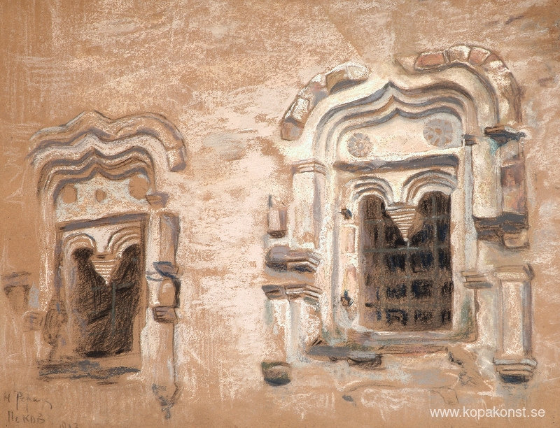 Vi erbjuder dig en hantverksmässig reproduktion på duk av det berömda konstverket 'Fönster i huset av XVII-talet' av Nicholas Roerich, från Reproduktionsmuseet.