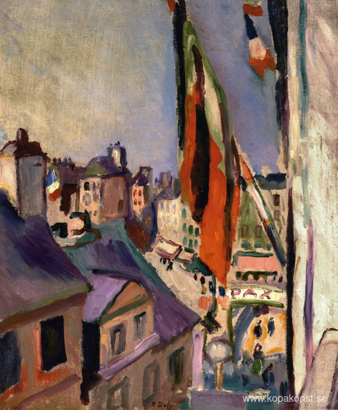 Vi erbjuder dig en hantverksmässig reproduktion på duk av det berömda konstverket 'Flagga dekorerad gata' av Pierre-Auguste Renoir, från Reproduktionsmuseet.