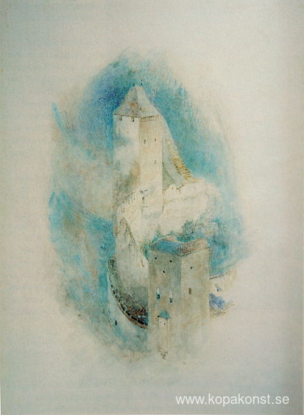 Vi erbjuder dig en hantverksmässig reproduktion på duk av det berömda konstverket 'Fribourgs torn ' av John Ruskin, från Reproduktionsmuseet.