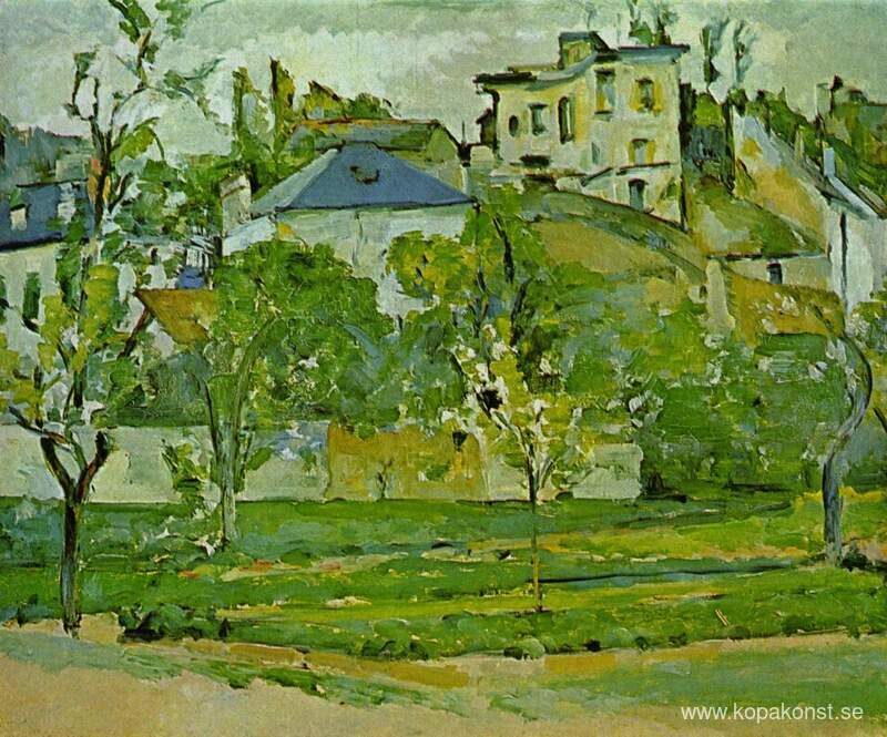 Vi erbjuder dig en hantverksmässig reproduktion på duk av det berömda konstverket 'Fruktträdgård i Pontoise' av Paul Cezanne, från Reproduktionsmuseet.