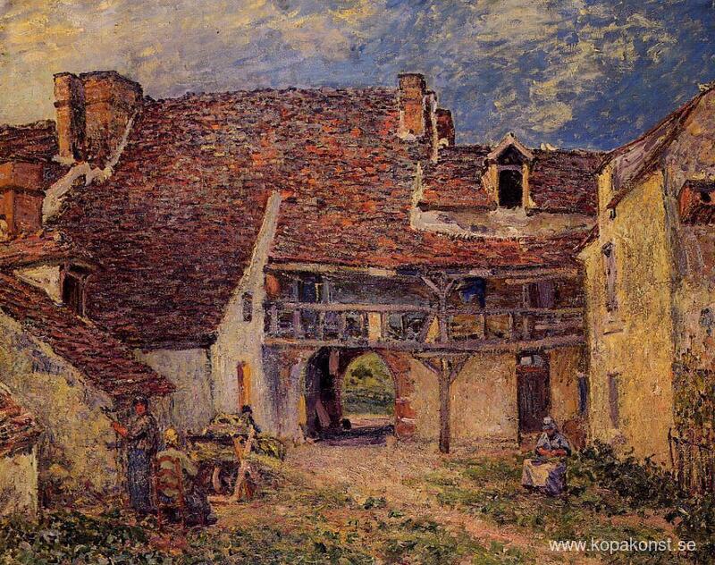 Vi erbjuder dig en hantverksmässig reproduktion på duk av det berömda konstverket 'Gården till en gård i Saint Mammes' av Alfred Sisley, från Reproduktionsmuseet.
