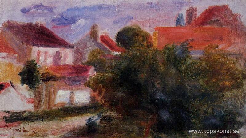Vi erbjuder dig en hantverksmässig reproduktion på duk av det berömda konstverket 'Gata i Essoyes' av Pierre-Auguste Renoir, från Reproduktionsmuseet.