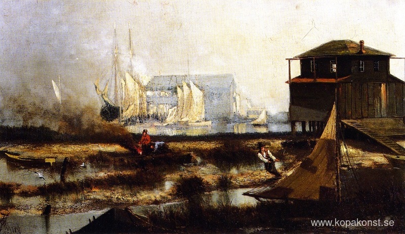 Vi erbjuder dig en hantverksmässig reproduktion på duk av det berömda konstverket 'Hamnscenen ' av Henry Ossawa Tanner, från Reproduktionsmuseet.