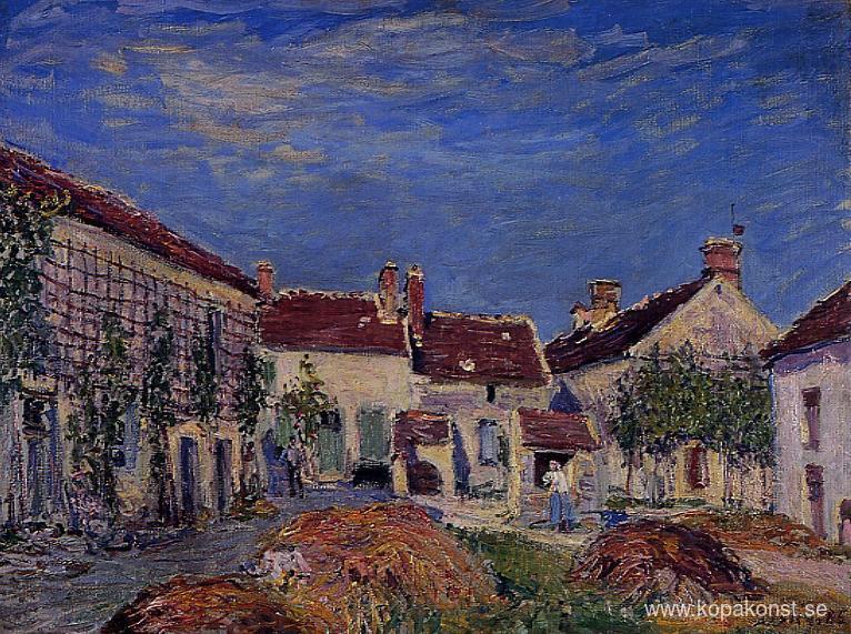 Vi erbjuder dig en hantverksmässig reproduktion på duk av det berömda konstverket 'Innergård vid Les Sablons' av Alfred Sisley, från Reproduktionsmuseet.