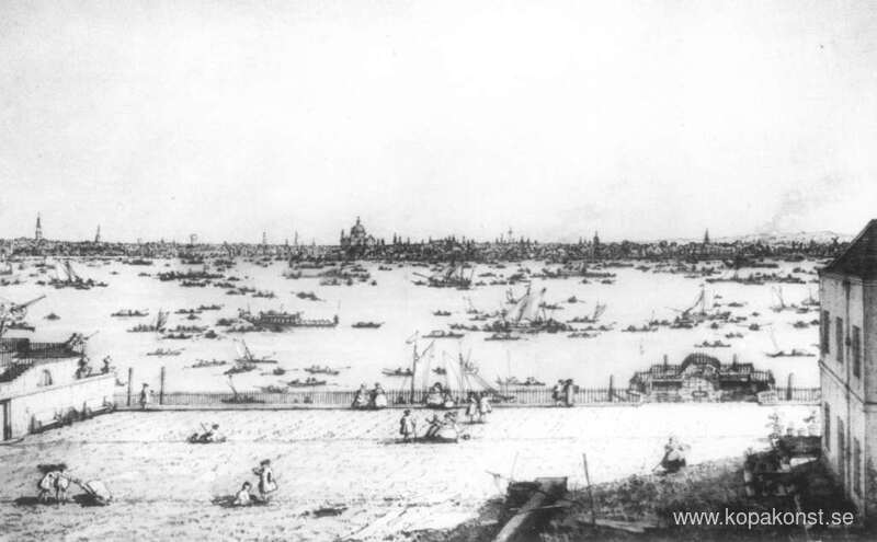 Vi erbjuder dig en hantverksmässig reproduktion på duk av det berömda konstverket 'London: Themsen och City of London från Terrace of Richmond Hous' av Canaletto, från Reproduktionsmuseet.