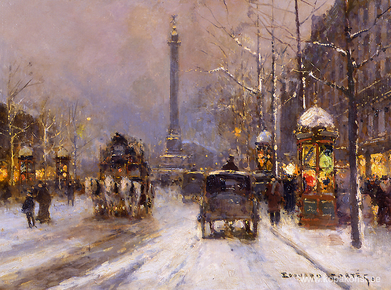 Vi erbjuder dig en hantverksmässig reproduktion på duk av det berömda konstverket 'Place de la Bastille' av Edouard Cortes, från Reproduktionsmuseet.