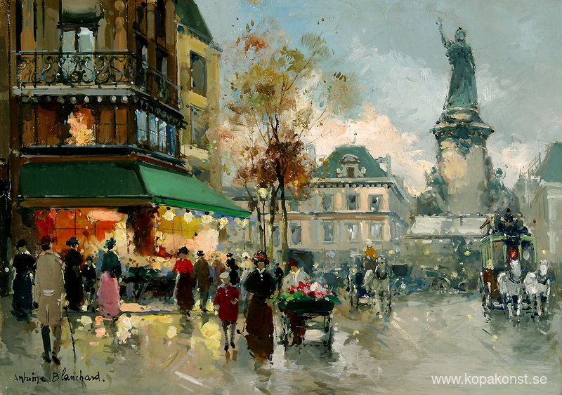 Vi erbjuder dig en hantverksmässig reproduktion på duk av det berömda konstverket 'Place de la Republic' av Antoine Blanchard, från Reproduktionsmuseet.