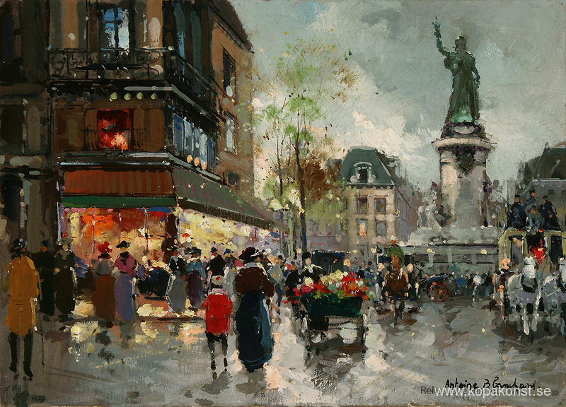 Vi erbjuder dig en hantverksmässig reproduktion på duk av det berömda konstverket 'Place de la Republic' av Antoine Blanchard, från Reproduktionsmuseet.