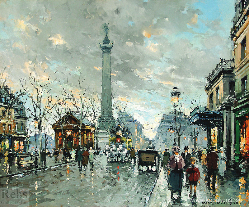 Vi erbjuder dig en hantverksmässig reproduktion på duk av det berömda konstverket 'Platser från Bastiile' av Antoine Blanchard, från Reproduktionsmuseet.