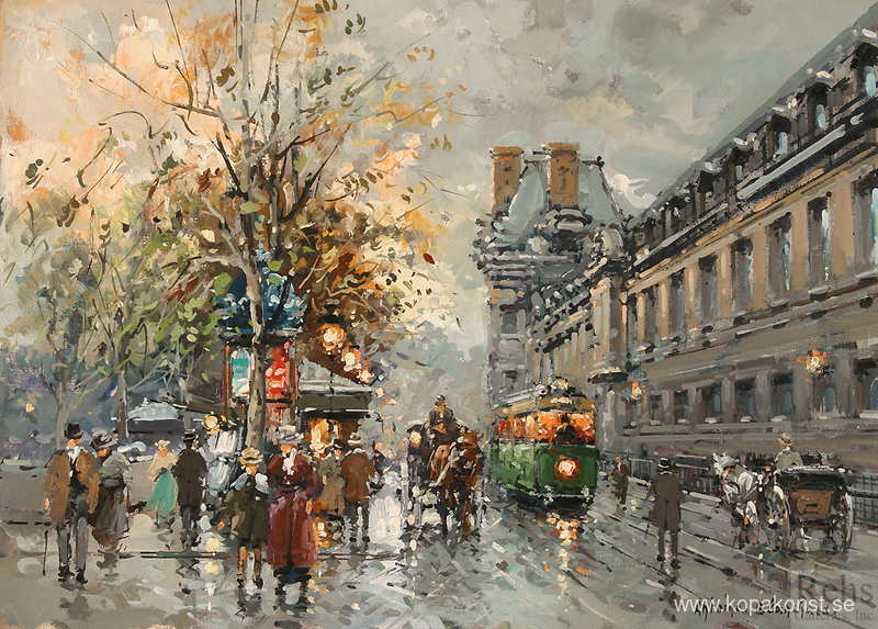 Vi erbjuder dig en hantverksmässig reproduktion på duk av det berömda konstverket 'Porte St. Denis' av Antoine Blanchard, från Reproduktionsmuseet.