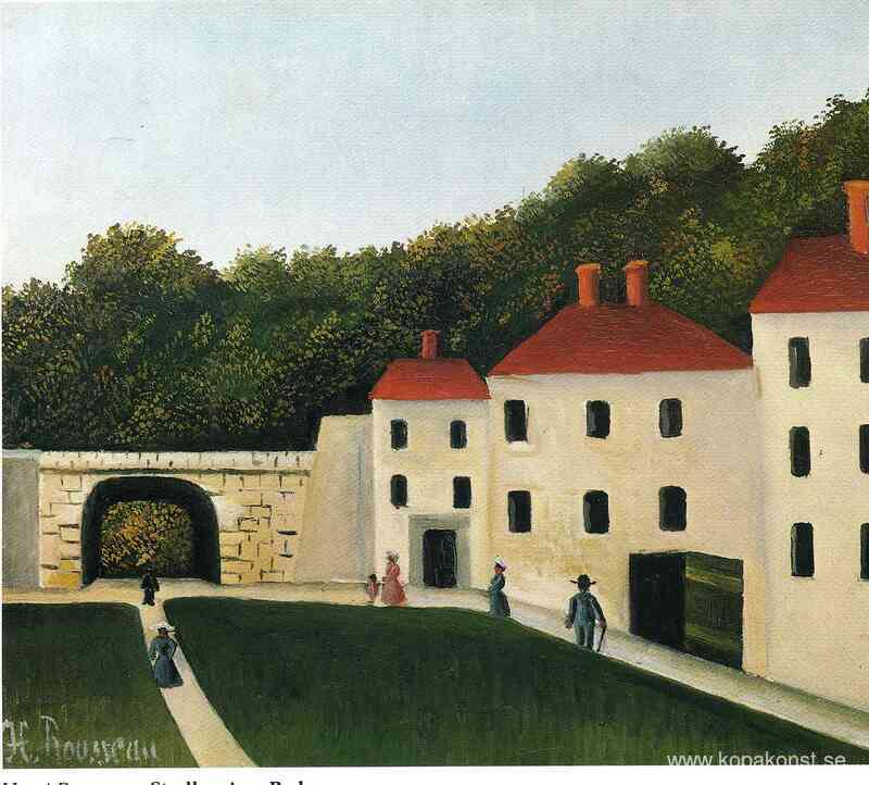 Vi erbjuder dig en hantverksmässig reproduktion på duk av det berömda konstverket 'Promeneurs dans un Parc ' av Henri Rousseau, från Reproduktionsmuseet.