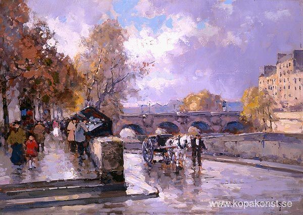 Vi erbjuder dig en hantverksmässig reproduktion på duk av det berömda konstverket 'Quai de la Siene' av Edouard Cortes, från Reproduktionsmuseet.