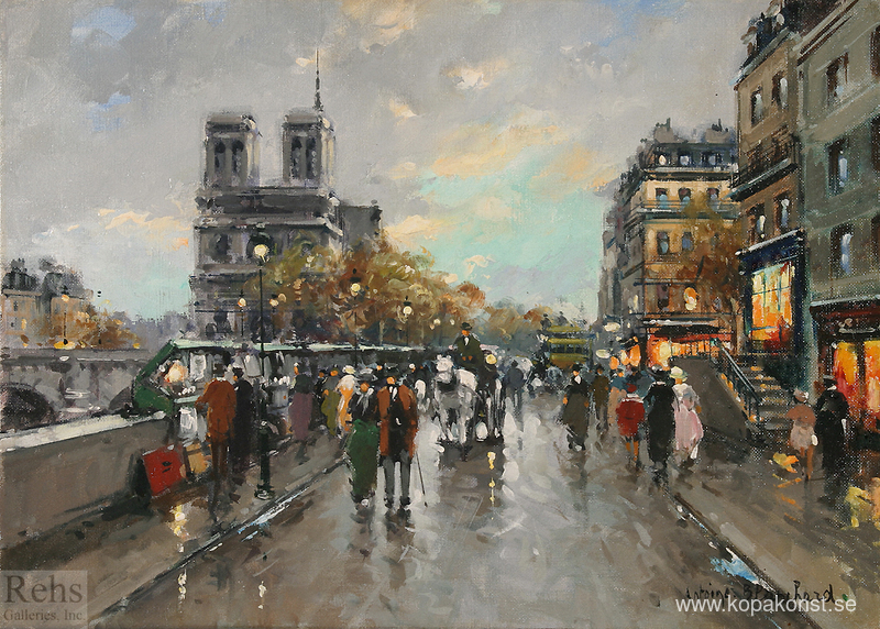Vi erbjuder dig en hantverksmässig reproduktion på duk av det berömda konstverket 'Quai St. Michel, Notre Dame' av Antoine Blanchard, från Reproduktionsmuseet.