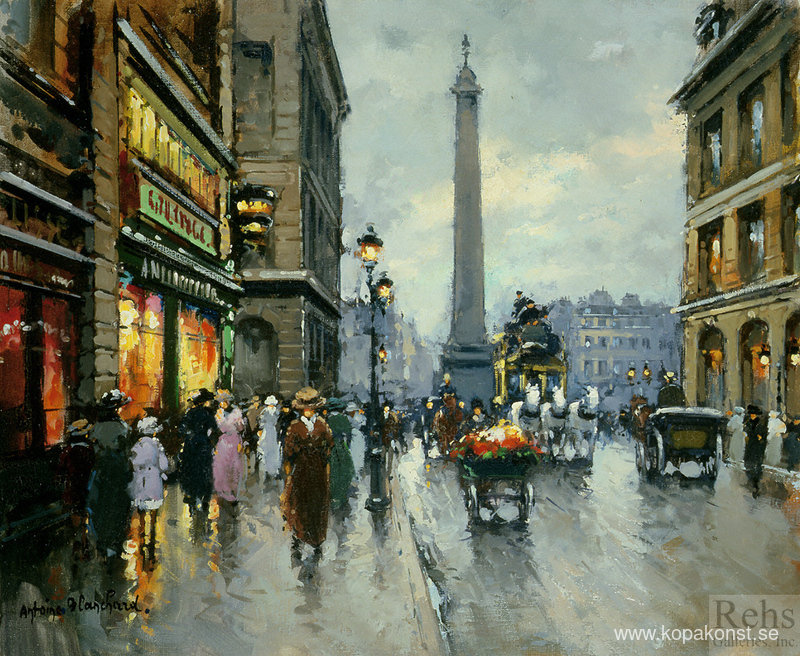 Vi erbjuder dig en hantverksmässig reproduktion på duk av det berömda konstverket 'Rue de la Paix Place Vendome' av Antoine Blanchard, från Reproduktionsmuseet.