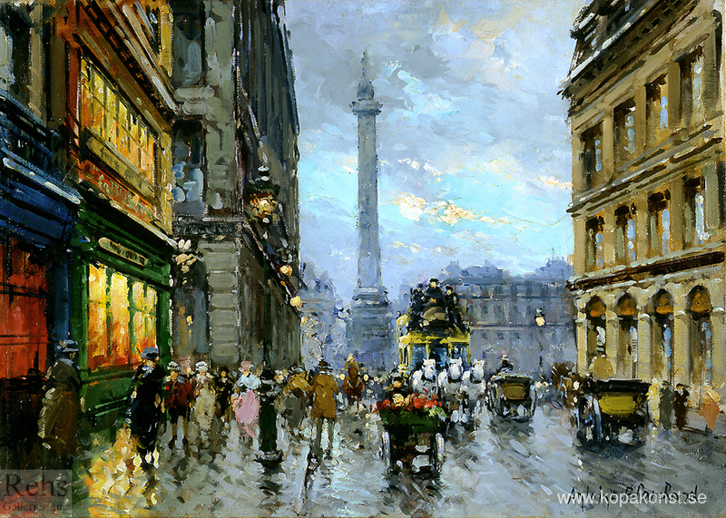 Vi erbjuder dig en hantverksmässig reproduktion på duk av det berömda konstverket 'Rue de la Paix Place Vendome' av Antoine Blanchard, från Reproduktionsmuseet.