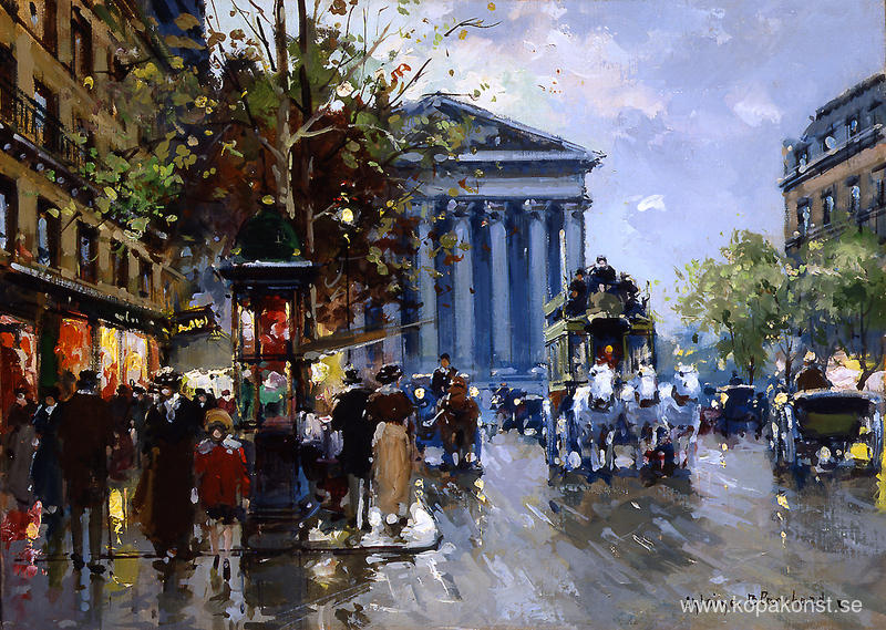 Vi erbjuder dig en hantverksmässig reproduktion på duk av det berömda konstverket 'Rue Royal Madeleine' av Antoine Blanchard, från Reproduktionsmuseet.