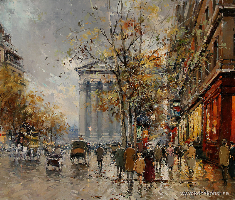 Vi erbjuder dig en hantverksmässig reproduktion på duk av det berömda konstverket 'Rue Royal Madeleine' av Antoine Blanchard, från Reproduktionsmuseet.