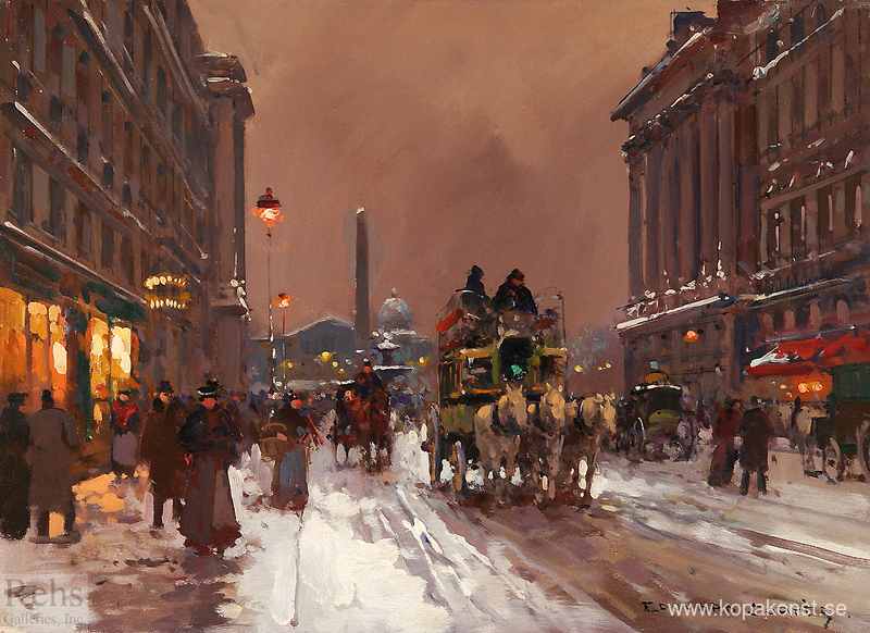 Vi erbjuder dig en hantverksmässig reproduktion på duk av det berömda konstverket 'Rue Royale, Winter' av Edouard Cortes, från Reproduktionsmuseet.