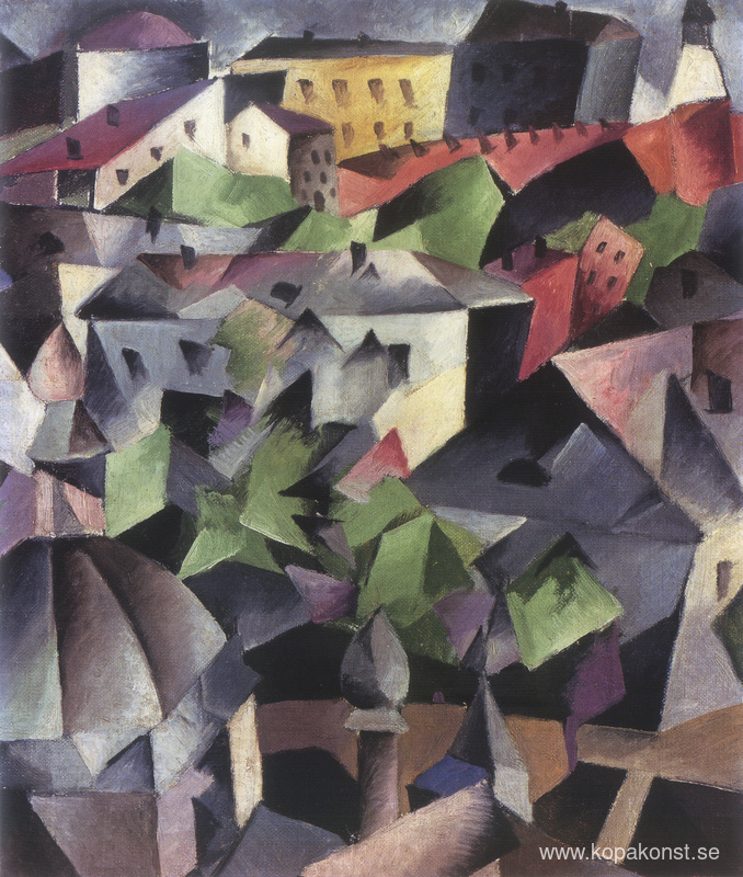 Vi erbjuder dig en hantverksmässig reproduktion på duk av det berömda konstverket 'Stadsbild. Kiev.' av Oleksandr Bogomazov, från Reproduktionsmuseet.