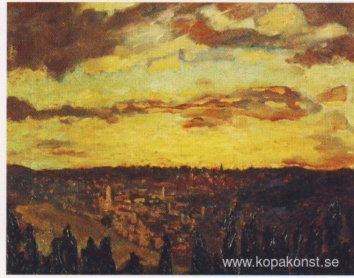 Vi erbjuder dig en hantverksmässig reproduktion på duk av det berömda konstverket 'Utsikt över Jerusalem' av Winston Churchill, från Reproduktionsmuseet.