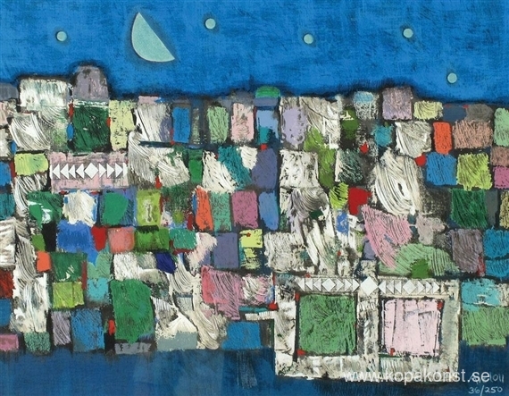 Vi erbjuder dig en hantverksmässig reproduktion på duk av det berömda konstverket 'Västra muren' av Mordecai Ardon, från Reproduktionsmuseet.